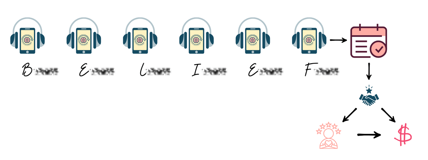 It can't be just ANY PODCAST; it must follow B.E.L.I.E.F. Funnel™